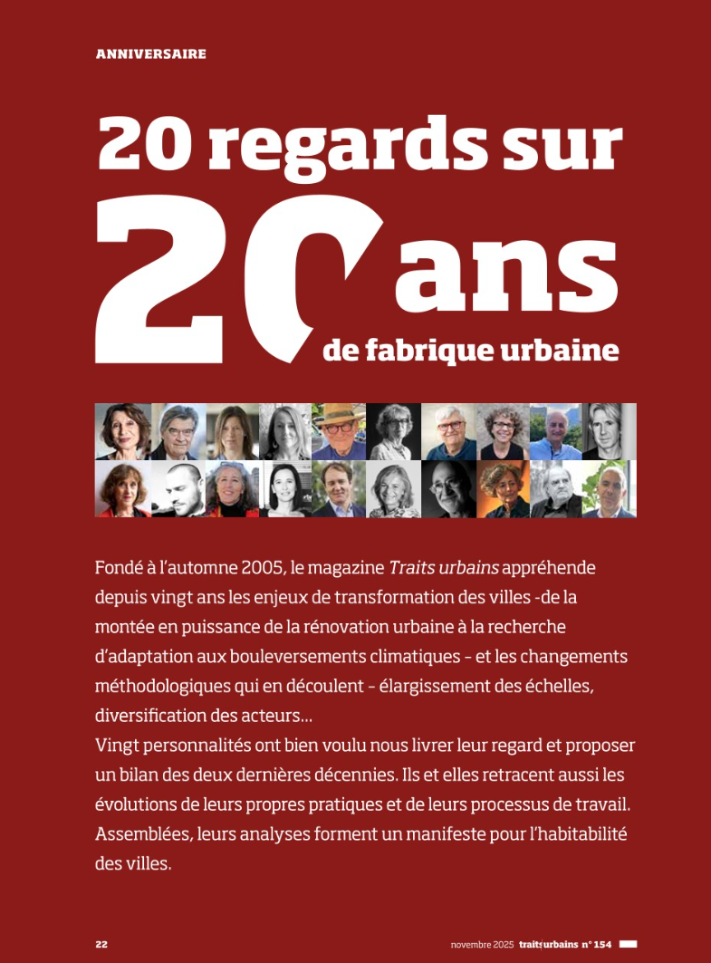 À l’occasion du numéro spécial des 20 ans de Traits Urbains, découvrez l’interview de Claude Bertolino, Directrice Générale de l’Établissement public foncier Provence-Alpes-Côte d’Azur – EPF Paca, membre du Laboratoire d’initiatives foncières et territoriales innovantes – LIFTI et intervenante des Assises du Foncier 2025, dans le cadre d’une série d’interviews de vingt personnalités majeures qui ont accepté de partager leur regard sur deux décennies de transformations urbaines.